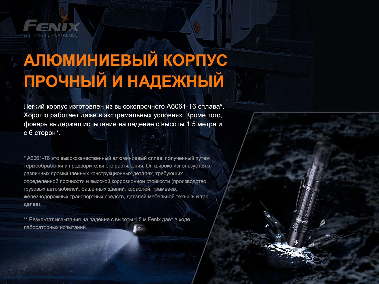 Фонарь имеет высокий уровень защиты от воды, не боится даже полного погружение под воду на глубину до 2 метров. Не подведет во время сильного дождя или снегопада. Несмотря на легкость (всего лишь 82 г), корпус модели очень прочен. Создан из авиационного алюминиевого сплава, прошедшего специальную процедуру повышения твердости – анодирование HAIII. Такой материал отличается износоустойчивостью, стойкостью к воздействию абразивов и появлению царапин.