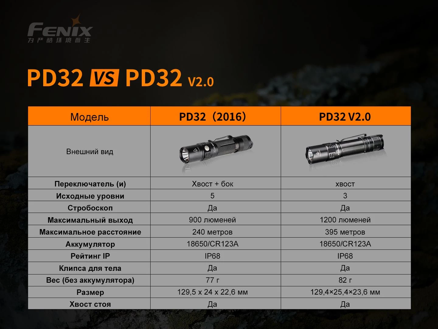Описание фонаря Fenix PD32 V2.0:
