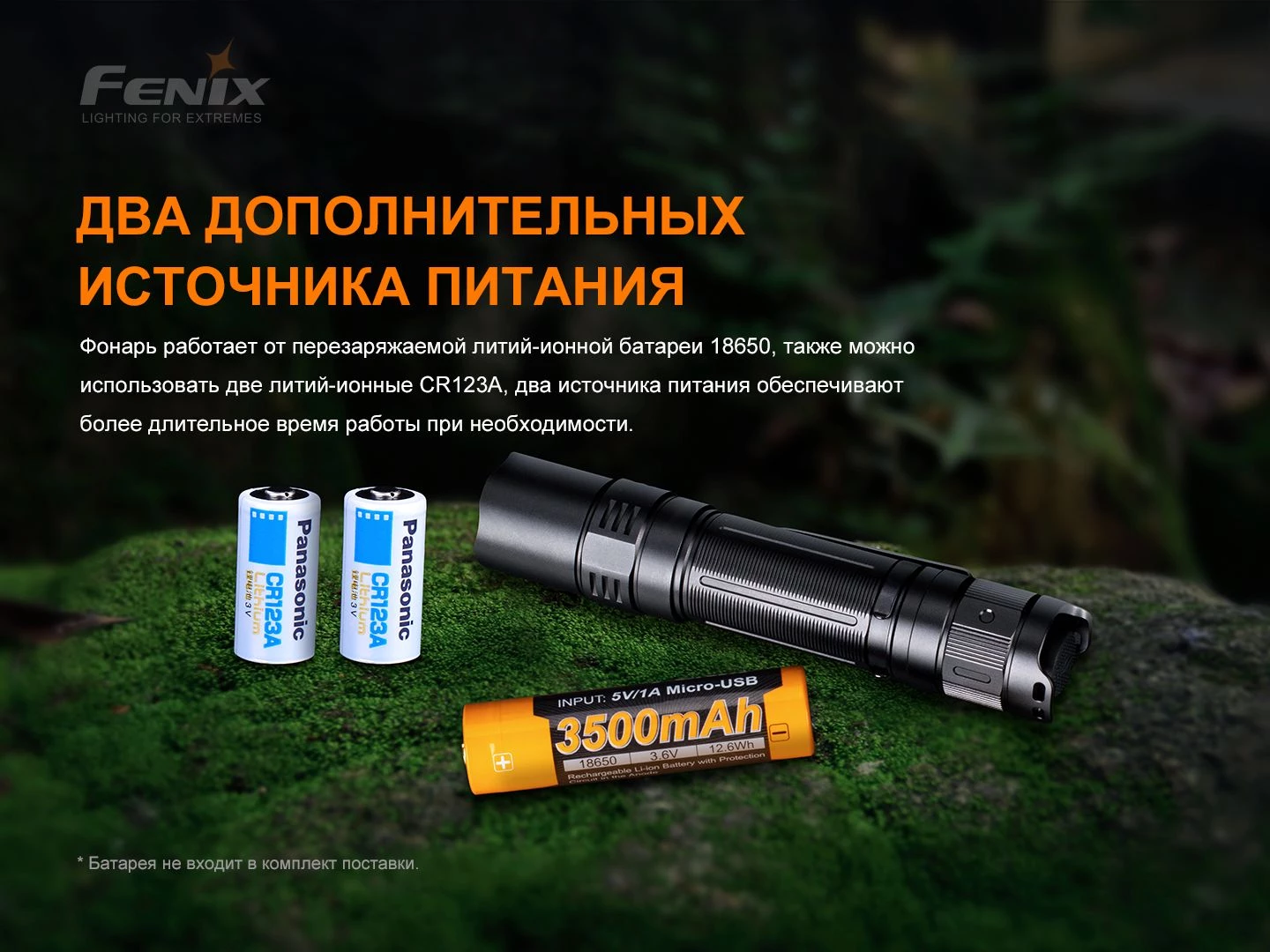 | Типоразмер элемента питания | 18650, CR123A |