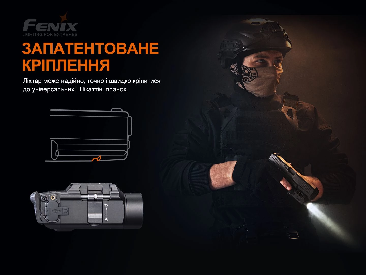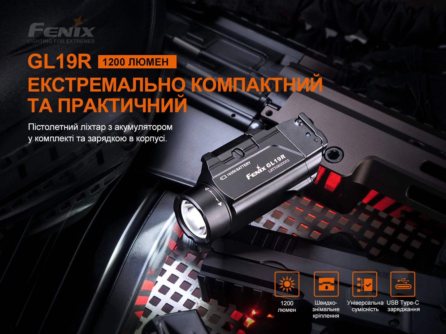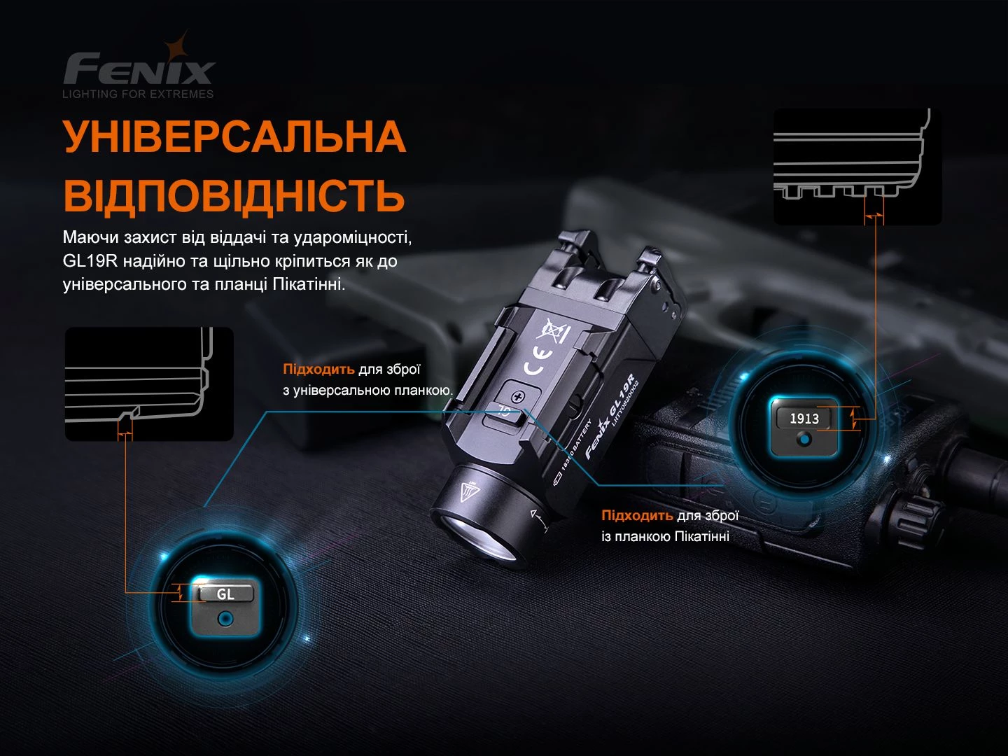Ліхтар підствольний до пістолета Fenix GL19R (Glock/ MIL-STD-1913 Picatinny)